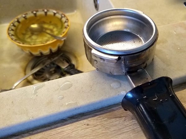 I’ve also got a portafilter holder to make tamping more comfortable — I used to tamp against an edge of the sink: